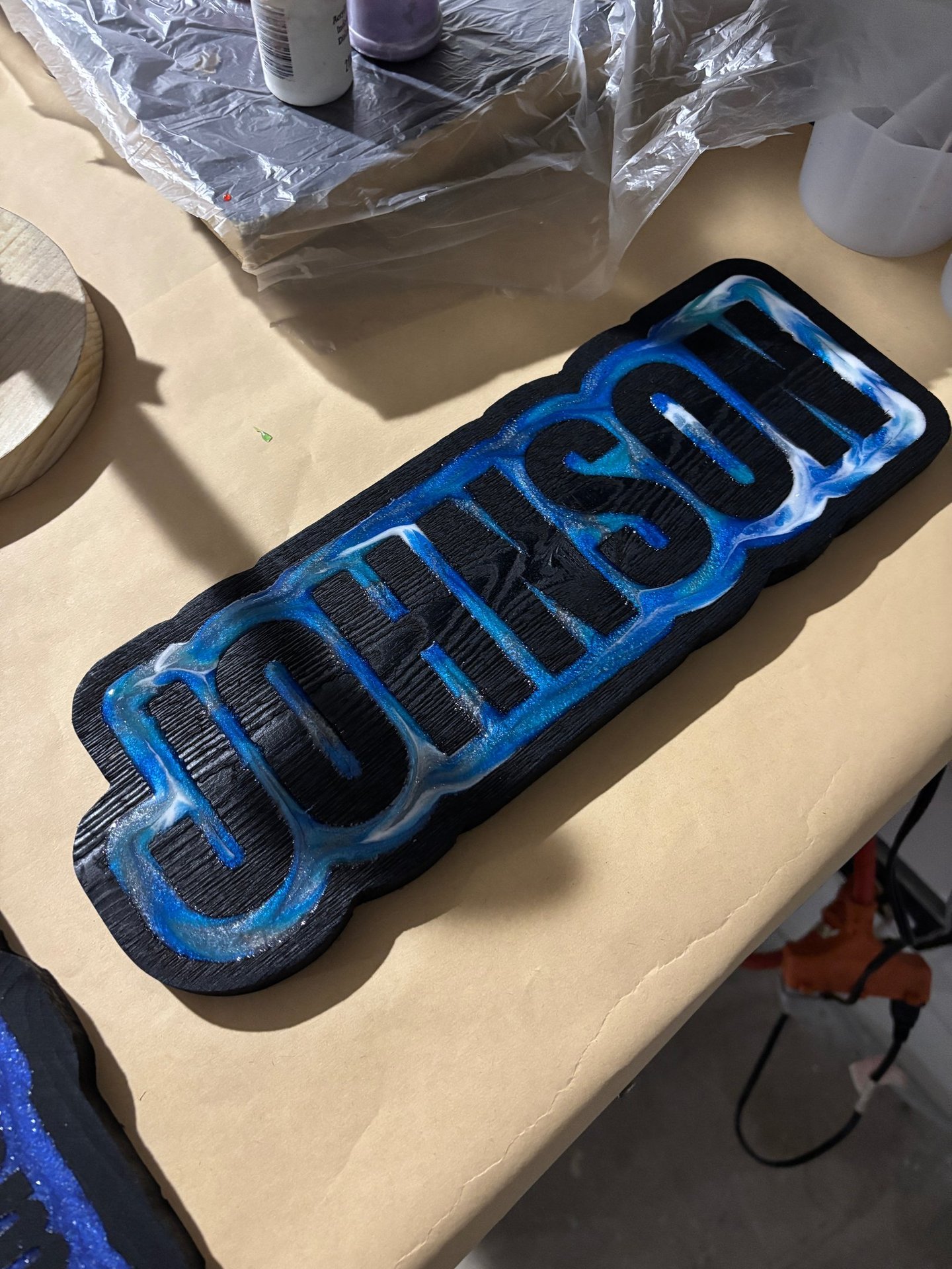 The natural wood with colorful epoxy fills made my sign truly one-of-a-kind.